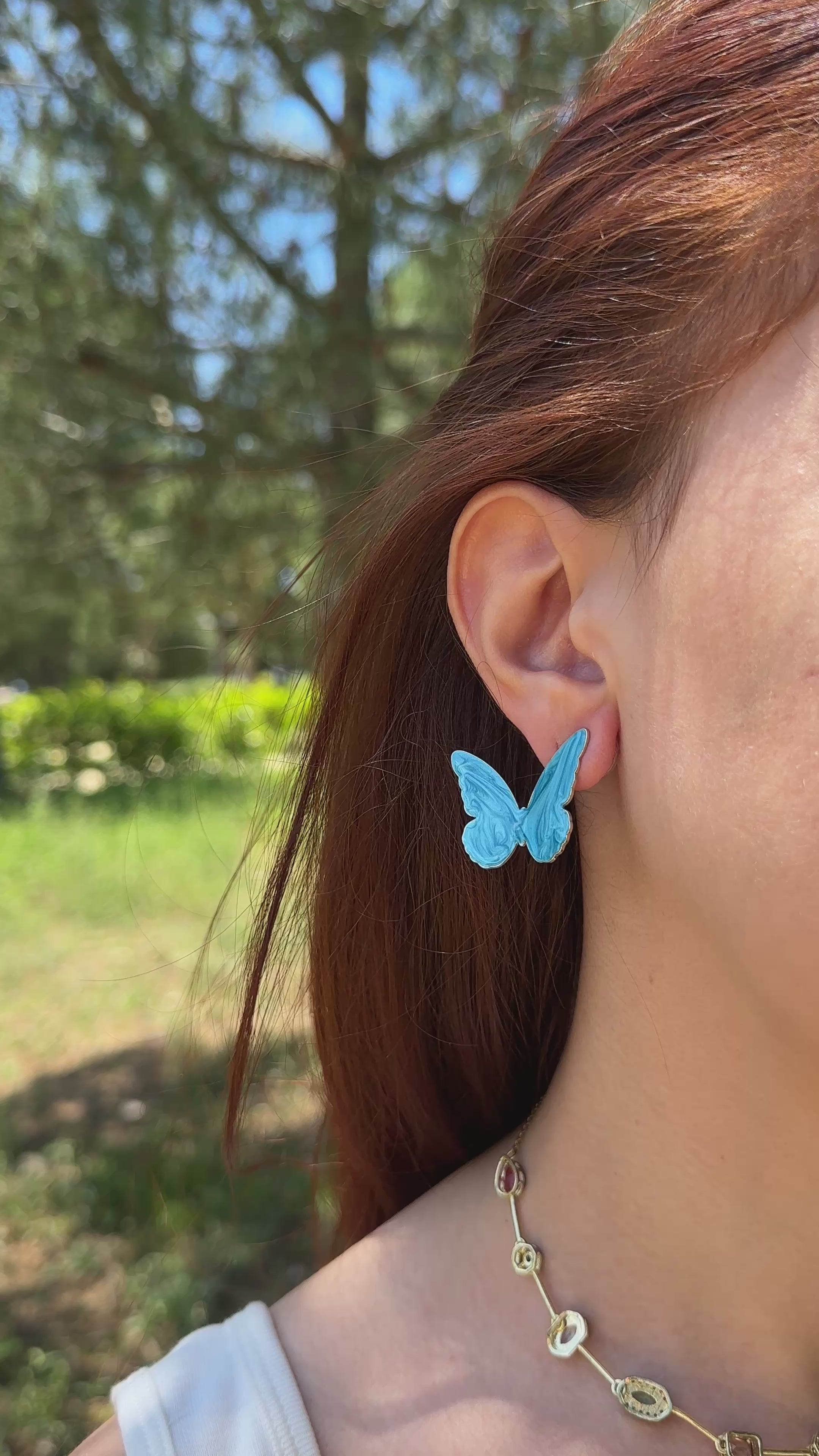 Mavi Mineli Kelebek Küpe